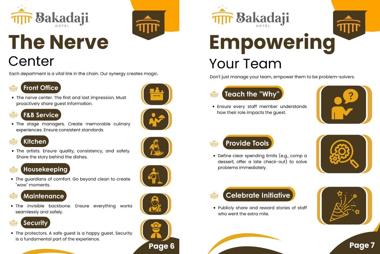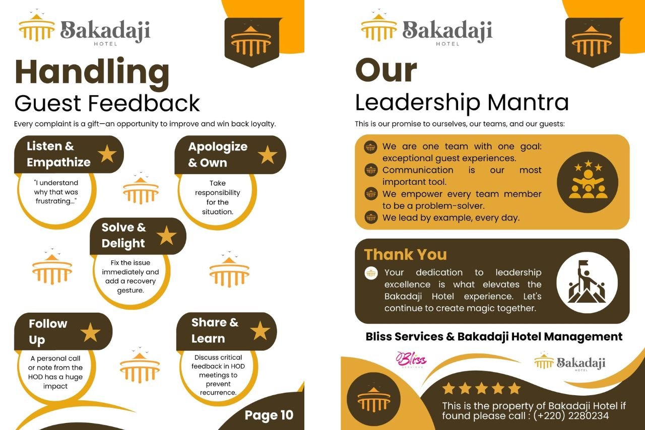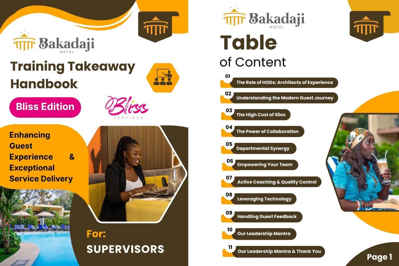 I developed a specialized leadership and management handbook for the supervisory team of Bakadaji Hotel, the premier four-star eco-friendly property along Bertil Harding Highway. This “Bliss Edition” guide was crafted to empower Heads of Departments (HODs) as the primary architects of the guest experience, moving beyond operational checklists to instill a strategic, cohesive leadership philosophy.