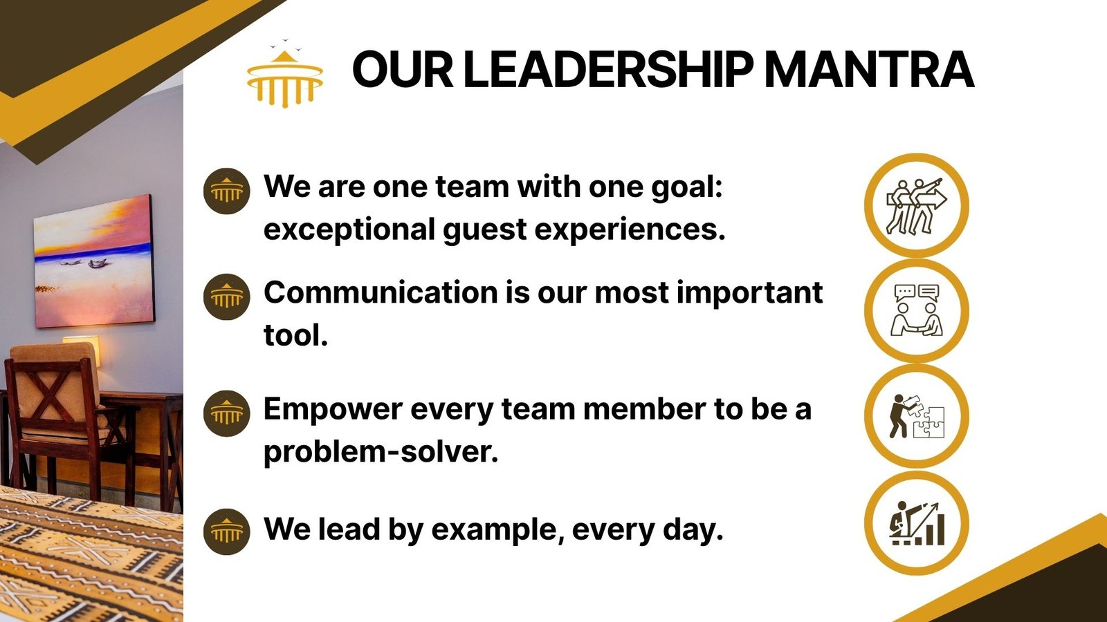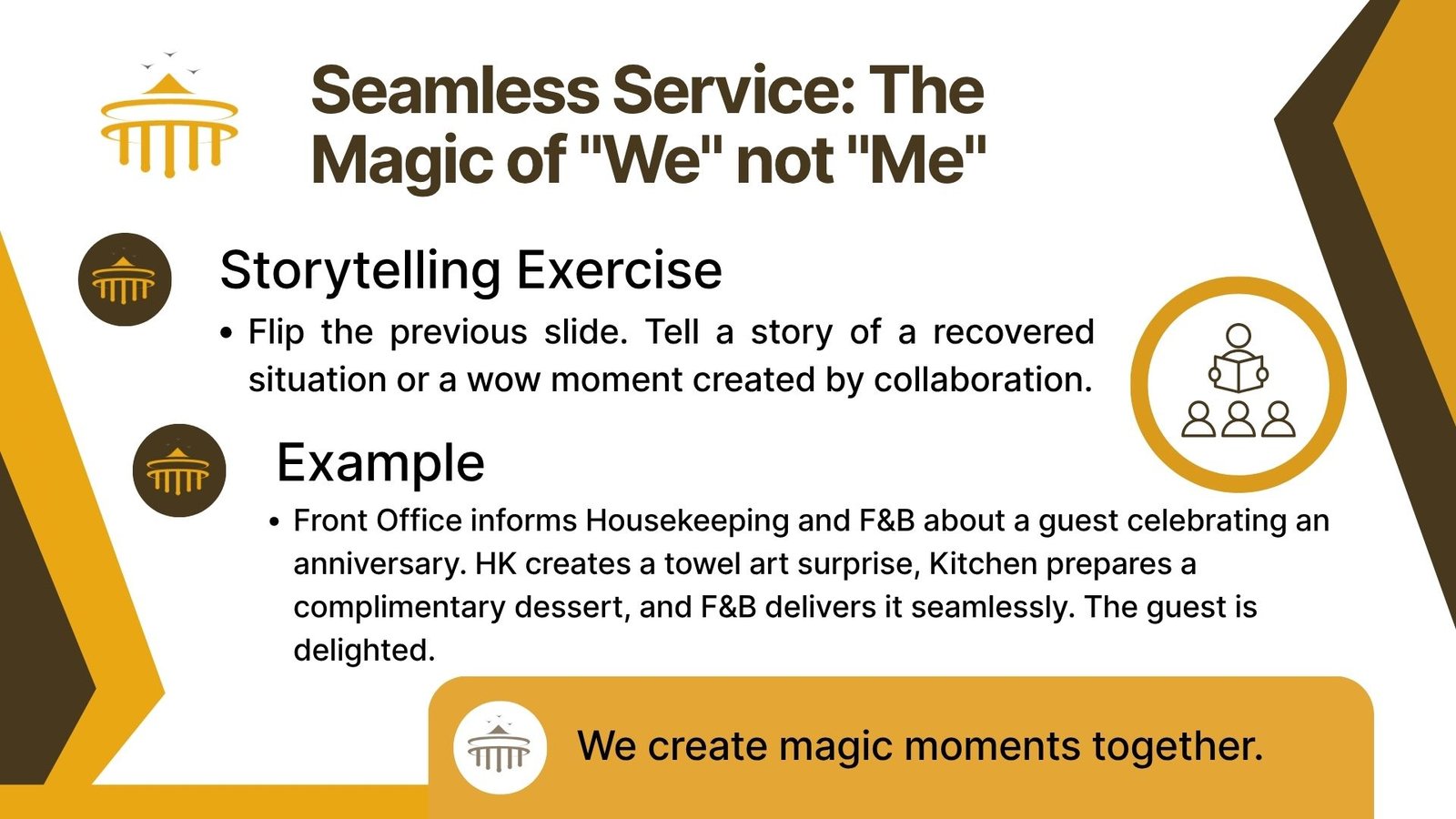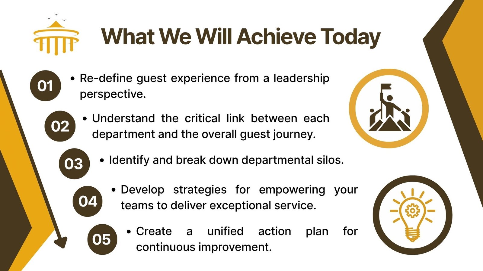 The program moved beyond operational basics to focus on high-impact leadership principles, including mapping the modern guest journey, breaking down departmental silos, and fostering a culture of collaboration. It featured advanced modules on active coaching, team empowerment, leveraging technology for seamless communication, and a deep-dive analysis of each department’s role in the service chain. Through interactive exercises, strategic action planning, and the L.E.A.R.N. model for handling challenges, the presentation empowered supervisors to lead by example and drive continuous improvement.
